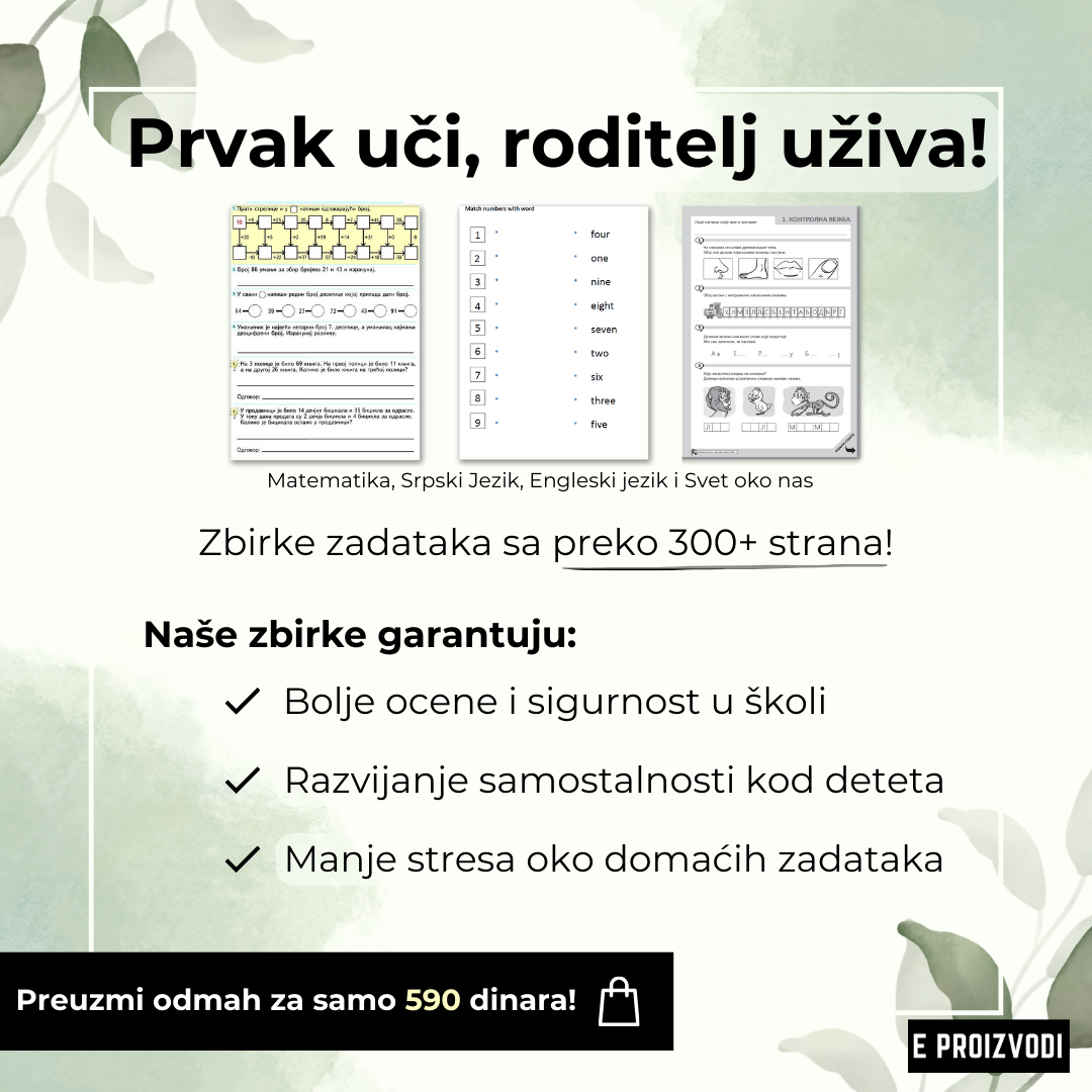 🎁 Uz kupovinu dobijate kompletan set radnih listova (preko 300 strana) spremnih za učenje i štampu.